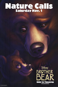 On Wednesday I saw Brother Bear. I liked it. It was an interesting movie albeit a little short. It was only 120 minutes so it seemed to fly by. However the music was really good and the story was funny and entertaining. The ending was a tad predictable, but like every Disney movie there was some good adult humor. I even like all the toys that are coming out dealing with the movie. That’s because bears are cool.